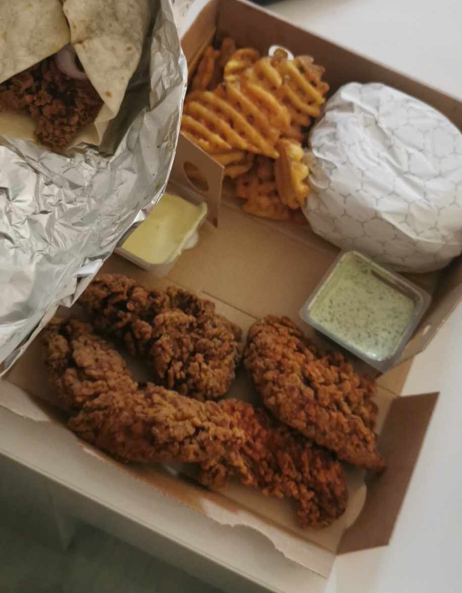 Rien à dire ! livré super rapidement, livreur au top ! nous avons pris le pepe burger, le the smocky one et les sauces pepe et creamy bbq et bien franchement c’était hyper super bon, bien quali, le poulet hyper bien assainies tendres etc rien dire masterclass !!